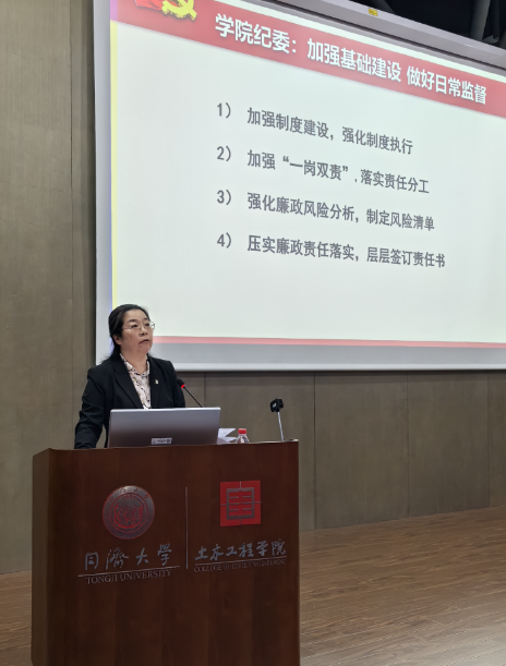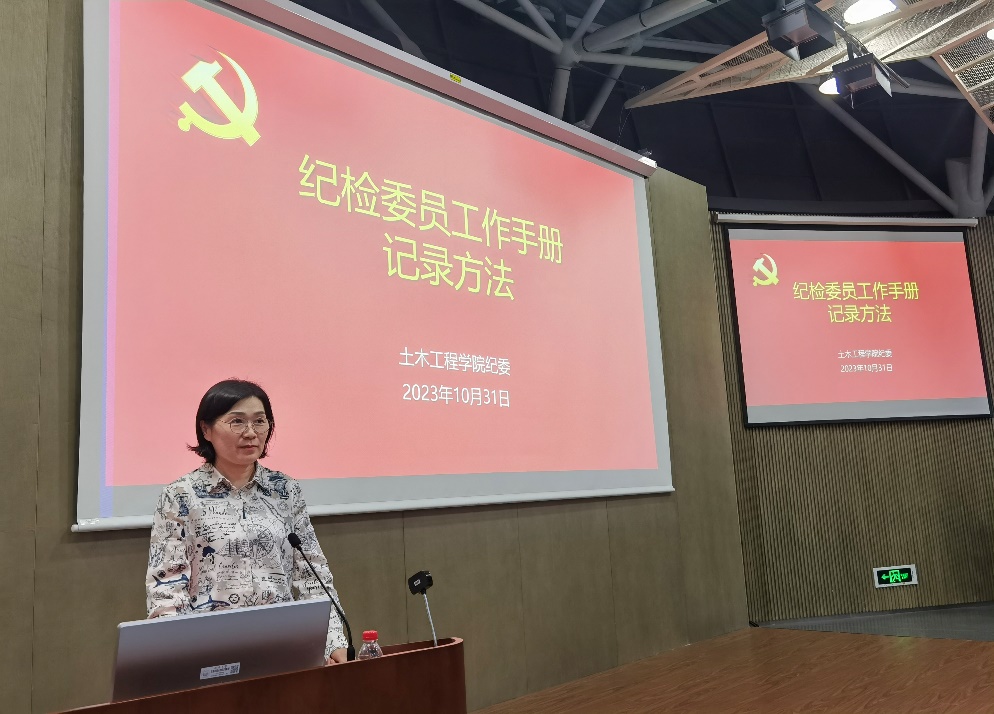 徐老师介绍了学院纪检工作基本概况,对纪检委员理论学习、专业能力提升、做实做细日常监督工作提出了要求,明确纪检委员应发挥好宣传员、监督员、信息员、巡查员、助理员等“多面手”的作用,把功夫下在平时,认真做好招生工作、采购招标、职称评聘、学生评奖评优等重点领域的监督,并号召纪检委员同心协力,大胆履职,共同做好学院纪检工作。
