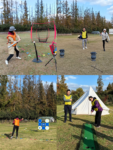 心理减压活动在上海市长兴岛长岛庄园内营地举行。活动开始前,带队老师组织大家热身,然后进行趣味团建活动规则的讲解,其中包括团队沙包投掷、飞盘九宫格、美式布袋球、高尔夫推杆、投壶等项目。让大家在轻松愉快的氛围中快速进入状态,纷纷卸下工作中的重担、压力,尽情地投入到了活动当中。教职员工们各显身手,尽情享受着活动带来的乐趣与快乐。