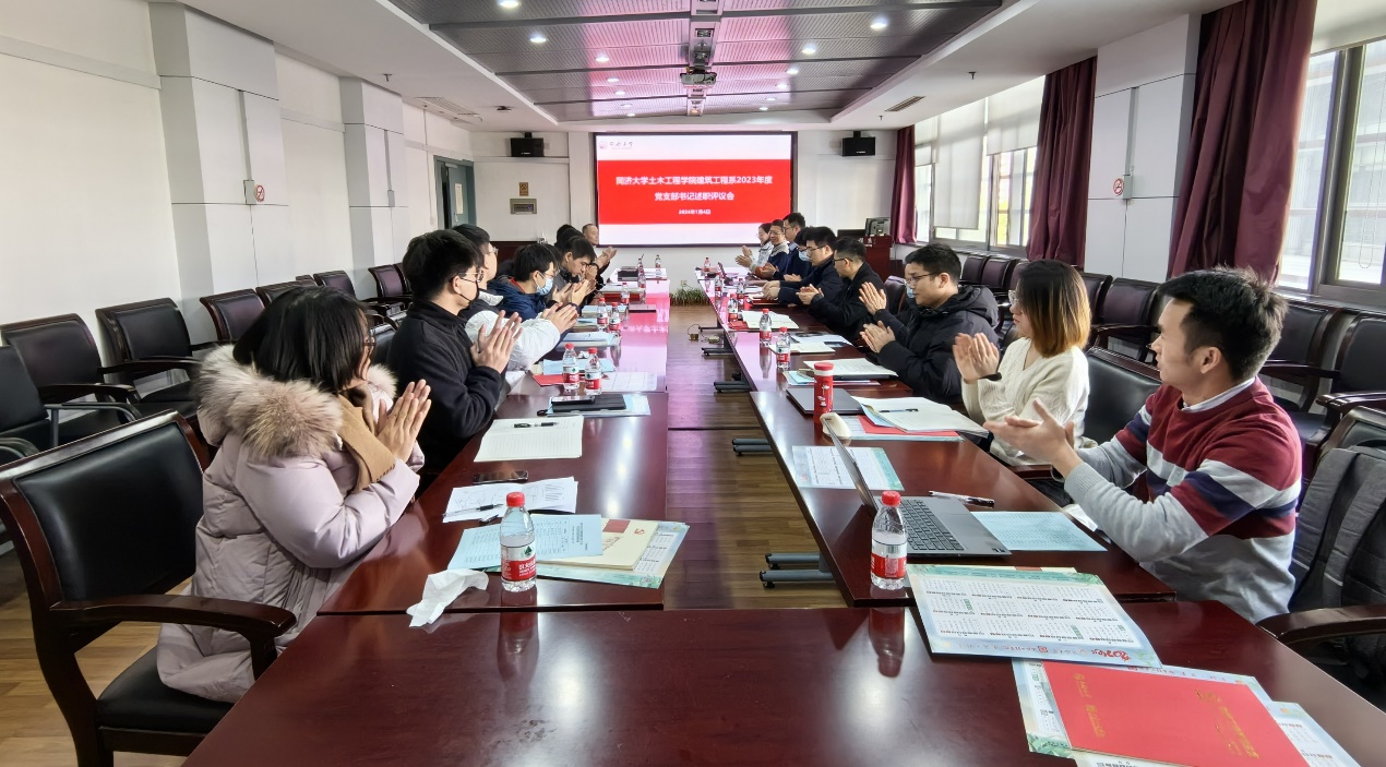 2024年1月9日,yl6809永利YL集团2023年度党总支书记、直属支部书记抓基层党建工作述职考核评议会在土木大楼A218会议室举行。学院党委书记黄雨出席并主持会议,学院党委领导班子成员、党委委员、全体教工党支部书记、党委组织员参加会议,听取党总支书记、直属支部书记抓基层党建工作述职并进行评议。