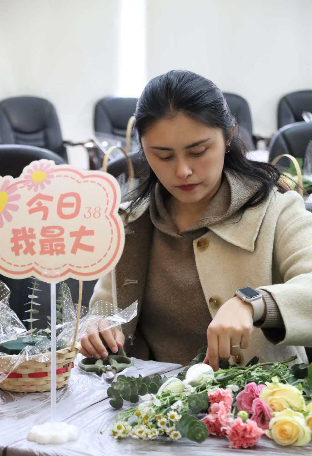 为庆祝“三八”妇女节,营造温馨愉快的节日氛围。3月7日中午,学院工会在桥梁馆101会议室组织了插花活动,邀请学院教职工广泛参与,感受明媚三月,体验中式插花美学,活动现场花香四溢、温馨浪漫、热情洋溢。