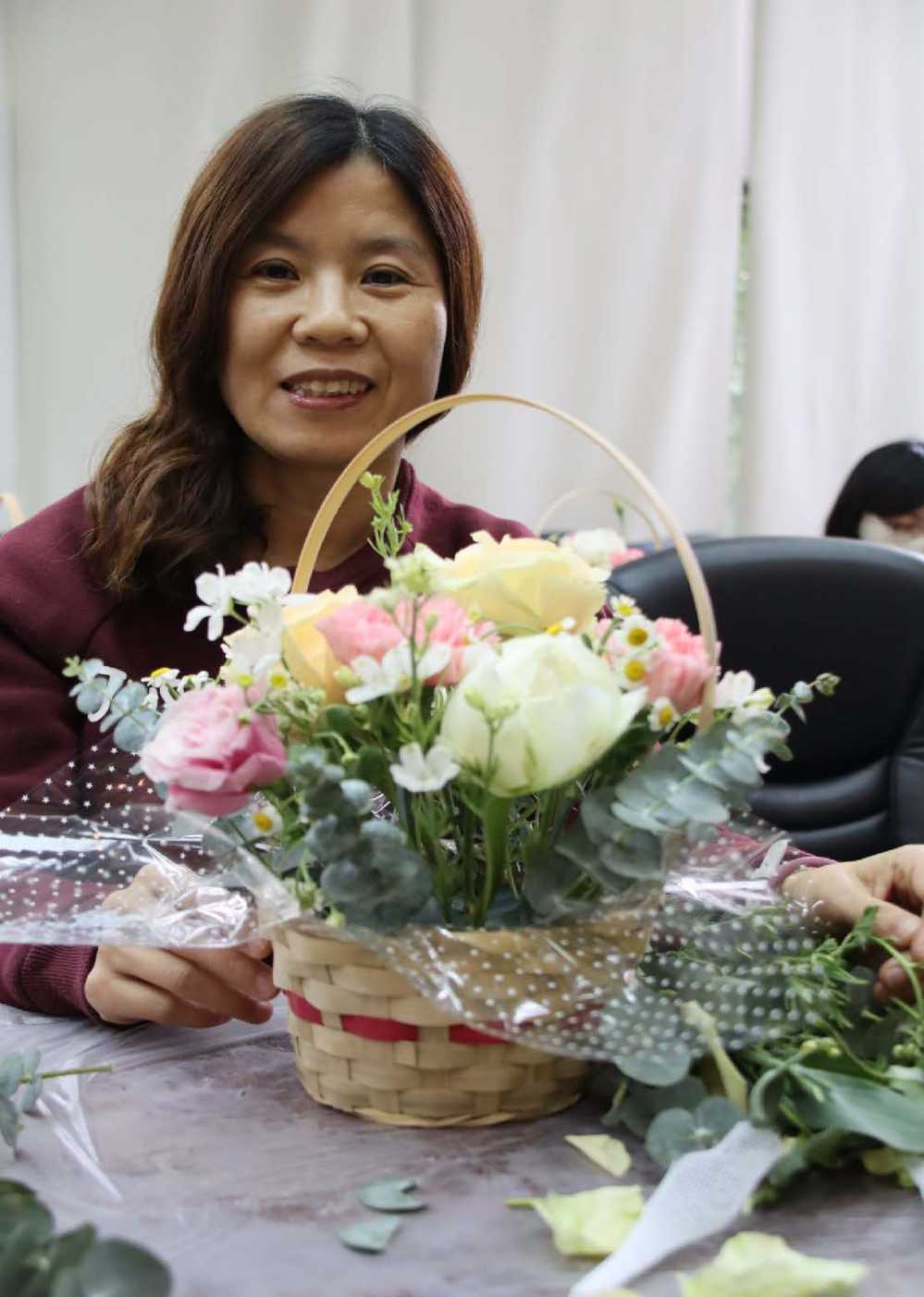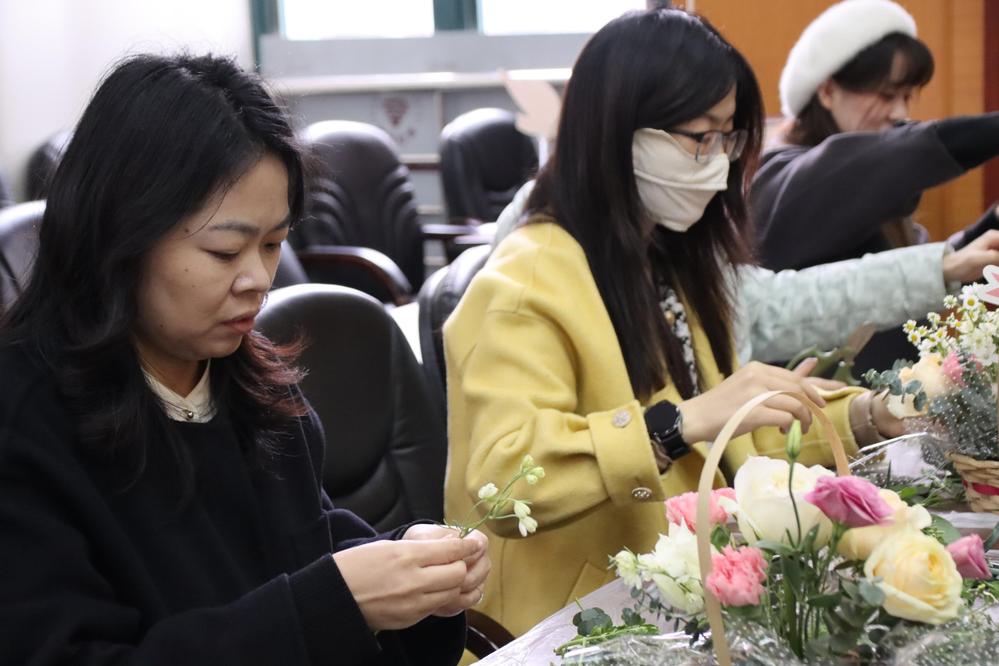 通过插花活动,教职工们更好地感受春日的温馨氛围,以花之名打包节日喜悦,在放松心情的同时,也手工制作了赏心悦目的桌面装饰,竹编花篮与鲜花的搭配,更加彰显“多插瓶花供宴坐,为渠消受一春闲”的悠闲意趣。此次春日插花活动受到大家的点赞与好评,教职工们将以更加饱满的精神状态投入到日常工作生活中。