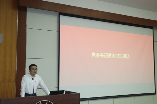 随后,院党委书记黄雨代表学院党委,向受到表彰的先进党组织和优秀个人表示热烈祝贺,向为党的事业和学院发展作出贡献的广大党员、师生员工致以崇高的敬意和诚挚的感谢。他强调,要坚定理想信念,筑牢精神之基,深入学习贯彻习近平新时代中国特色社会主义思想,增强“四个意识”,坚定“四个自信”,做到“两个维护”。要勇于担当作为,积极投身实践,敢于面对困难和挑战,勇于担当责任和义务,为学院建设成为中国特色世界一流学科贡献自己的力量。要加强团结协作,凝聚发展合力,牢固树立大局意识和协作精神,加强与兄弟院系、兄弟高校、兄弟行业的沟通交流和团结协作,共同推动学校各项事业的发展。
