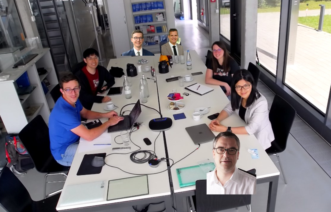 在德国达姆斯特工业大学学术交流 (左一:Matthias Martin Seel博士、左二:陈星助理教授、左三:Michael Kraus助理教授(线上)、 左四:Jens Schneider教授(线上)、左五:Miriam Schuster博士、左六:陈素文教授、右下:Ulrich Knaack教授(线上)) | ||
