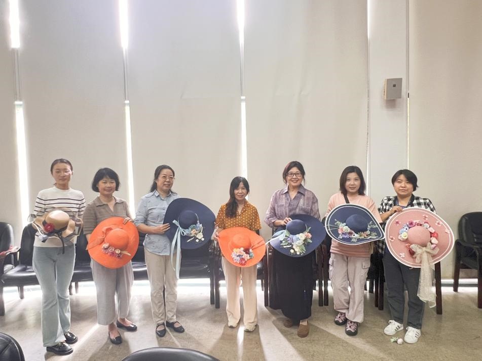 手工老师在授课过程中为大家介绍了关于草帽制作的风格选择、色彩搭配及注意事项等,大家纷纷发挥创造力与想象力,用花材及蕾丝等装饰材料,动手制作自己的专属花艺草帽,享受手工创作的乐趣与成就感。
