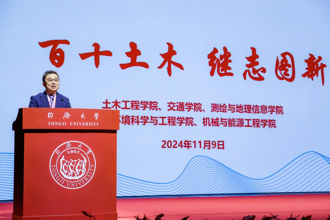 中国公路学会理事长翁孟勇表示,110年来,同济土木始终坚持“与祖国同行,以科教济世”,坚守学术阵地,倾注心血于人才培养,为国家重大建设作出了重要贡献。展望未来,同济土木系科正站在新的历史起点上,面临着前所未有的机遇与挑战。衷心祝愿同济土木守正创新,积极应对变革,继续勇担重任,不断推动科技创新与学科发展,再续辉煌,更好服务国家战略需求,服务人类发展进步。