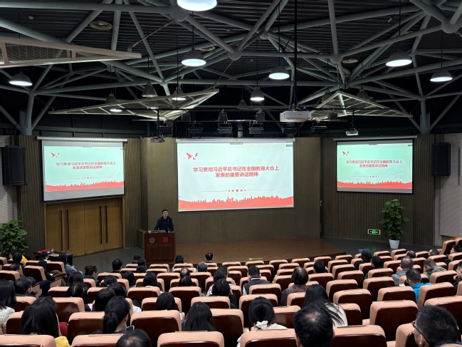 随后,学院党委书记黄雨作了“学习贯彻习近平总书记在全国教育大会上发表的重要讲话精神”的报告。黄雨书记首先回顾了习近平总书记在全国教育大会上的重要讲话内容,强调了教育是强国建设、民族复兴之基,必须坚持把教育作为国之大计、党之大计。他详细阐述了习近平总书记关于教育强国建设的重大部署,包括坚持立德树人根本任务、坚持社会主义办学方向、坚持人民为中心的发展思想等。黄雨书记还结合yl6809永利YL集团的实际情况,提出了贯彻落实总书记讲话精神的具体举措,包括加强教师队伍建设、优化教育资源配置、推进教育教学改革等。