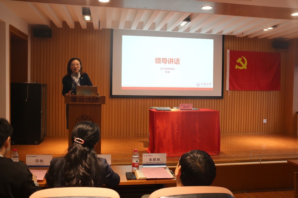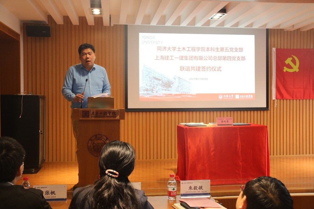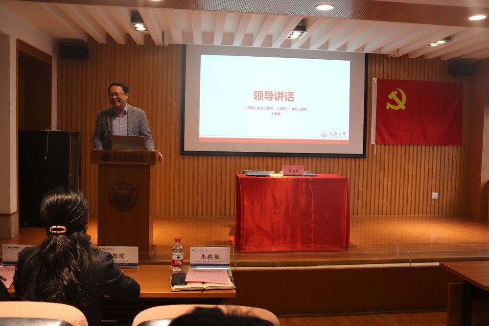 郑琼介绍了一建集团总部第四党支部的人员构成,并希望未来企业和学院共同谋划丰富多彩的党建活动,让更多的同济学子走近上海建工集团。