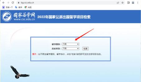 图1:项目检索页面(可通过留学国别和选派类别检索)