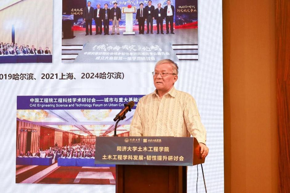 在“土木工程学科发展•韧性提升”研讨会上,我院吕西林教授从全球典型地震灾害带来的启示切入,指出了韧性城市建设的发展路径并重点讲述了可恢复功能防震减灾结构体系的新发展。