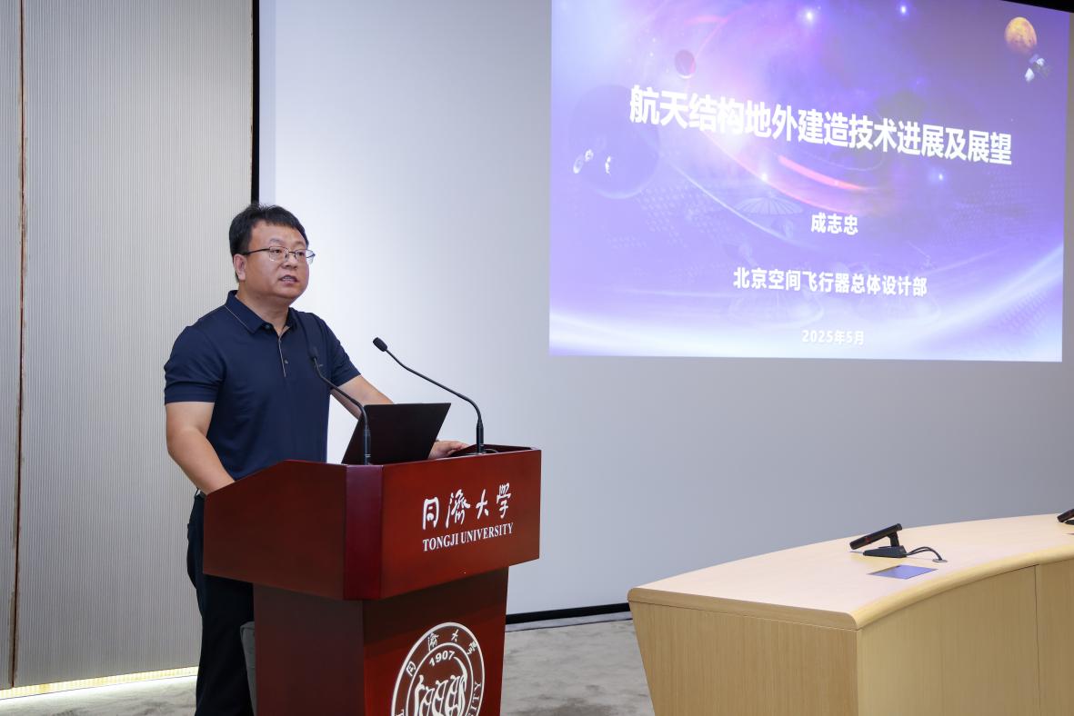 成志忠作《航天结构地外建造技术进展及展望》,结合在轨建造、原位建造,剖析了航天结构地外建造的重要意义,他表示,地外建造融合了航空航天、机械、控制、土木、材料、力学、建筑学等多学科交叉融合,希望未来能够开辟面向航天结构地外建造的细分赛道。