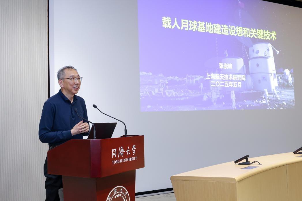 张崇峰作《载人月球基地建设设想和关键技术》主题报告,在分析月面环境特殊问题的基础上,探讨了载人月球基地方案及在轨建造、月面能源站在轨建造的工作设想和技术途径。