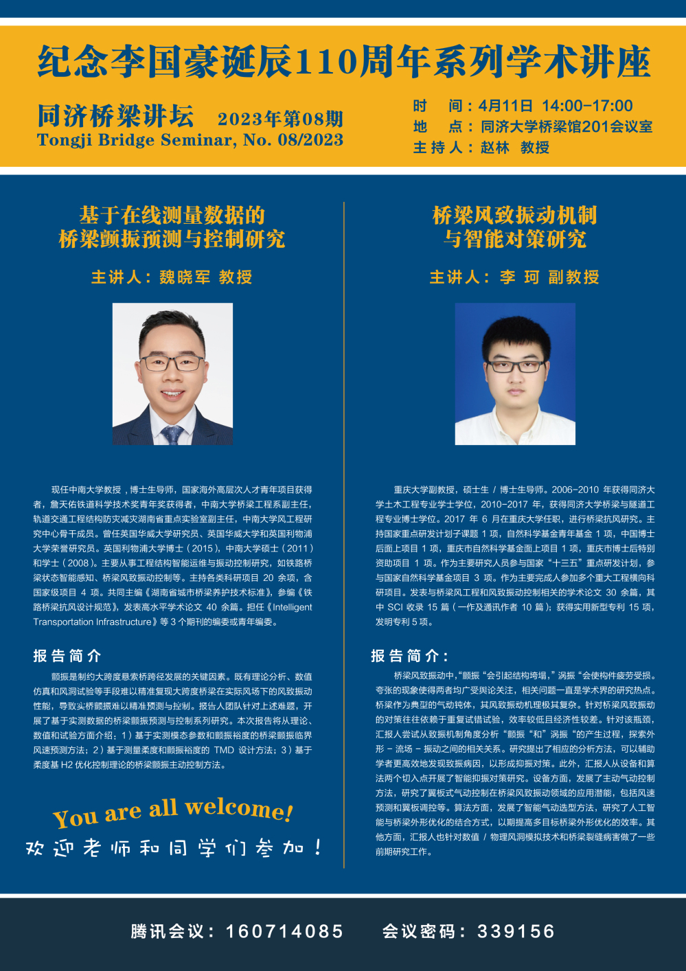 关于2023年第8期同济桥梁讲坛的通知