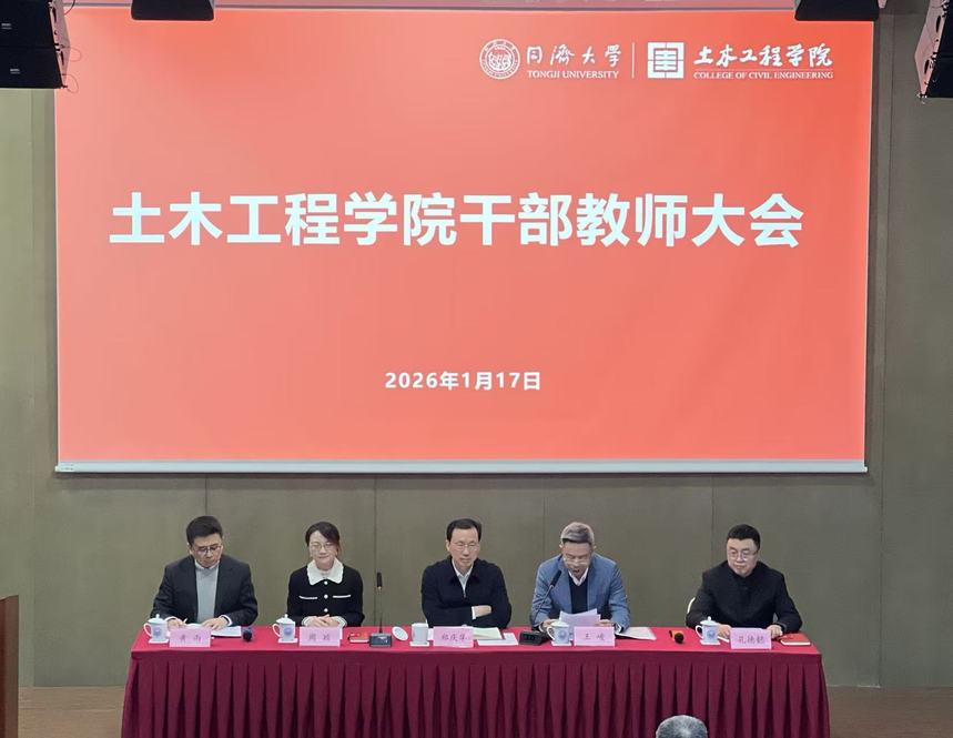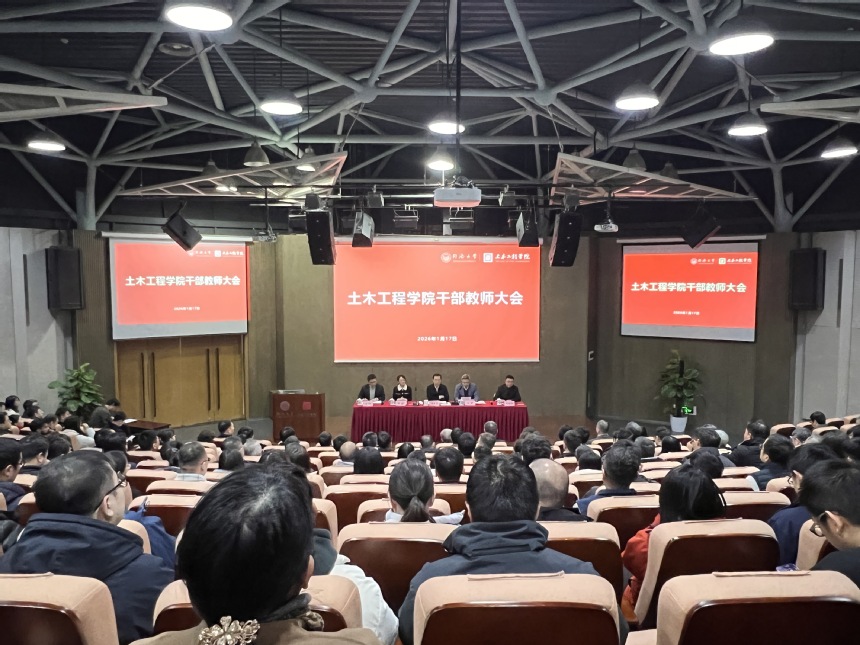 2026年1月17日下午,yl6809永利YL集团召开干部教师大会,yl6809永利集团党委书记、中国工程院院士郑庆华,中国工程院院士吕西林,yl6809永利集团党委常委、副校长石振明教授,党委常委、组织部部长王峻,学院党政领导及教师代表近300人参加会议。会议由王峻主持。