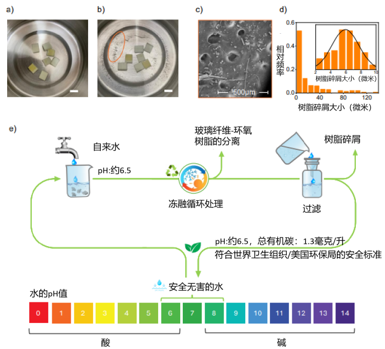 这项研究有两个格外突出的关键点:(i)令“损伤”发挥价值——利用退役风机叶片中由于疲劳产生的微裂纹来激发可控的纤维-树脂分离;(ii)在材料分析之外,引入了对冻融用水质的实用性环境评估。这两项创新共同推动了退役风机叶片回收领域实用的、以界面驱动的再利用思维模式。