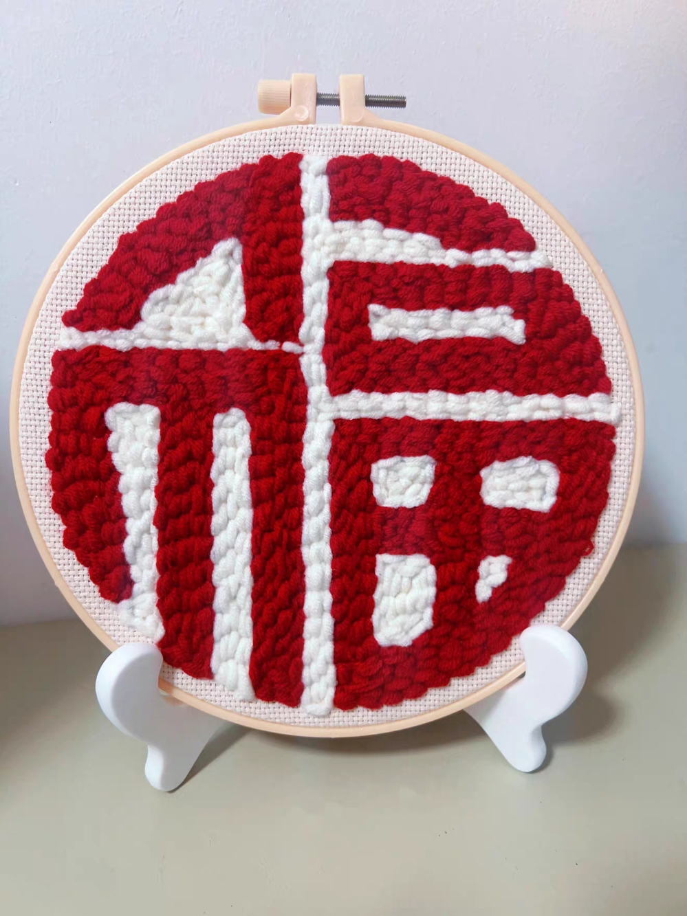 在福字“戳戳绣”环节,教职工手持戳针,轻穿毛线,专注地在布料上一针一线创作。大家专注投入、细致创作,每一个亲手戳制的“福”字,都纹理饱满、暖意十足,既承载着传统福文化的美好寓意,也彰显了教职工们专心手工、追求美好的生活情趣。