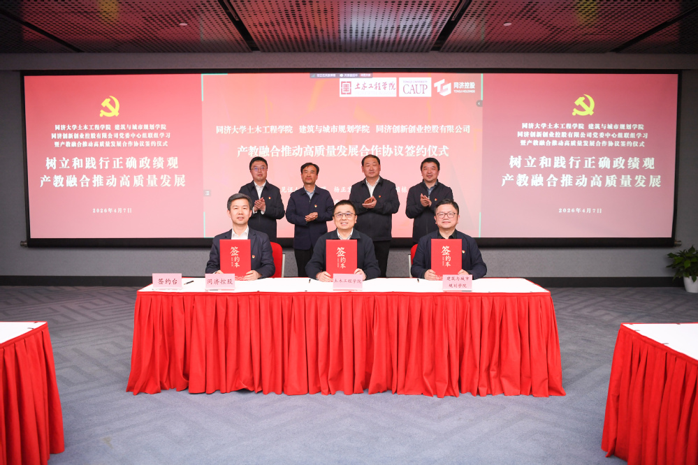 新闻动态为深入树立和践行正确政绩观,深化教育、科技、人才与产业融合发展,2026年4月7日,yl6809永利YL集团、建筑与城市规划学院与同济创新创业控股有限公司党委中心组联组学习暨产教融合推动高质量发展合作协议签约仪式在yl6809永利集团建筑设计研究院多功能厅举行。学校党委常委、副校长石振明出席活动并讲话,联组学习单位党委中心组成员参会,同济创新创业控股有限公司党委书记、董事长杨正宏同志主持活动。