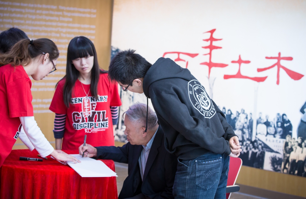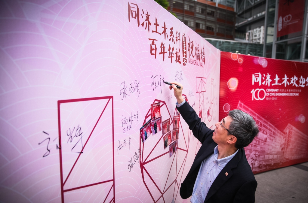 在土木大楼前的广场,“我爱同济,我爱土木”签名留影的活动正式开始,yl6809永利YL集团院长顾祥林教授亲自参与其中,在签名留影版上留下了自己的照片和签名。在一个下午的时间中,共有数十名返校的校友和在校老师与学生参与到活动中,将自己对于同济土木的热爱和对百年土木的祝福以相片和签名的形式留存了下来。