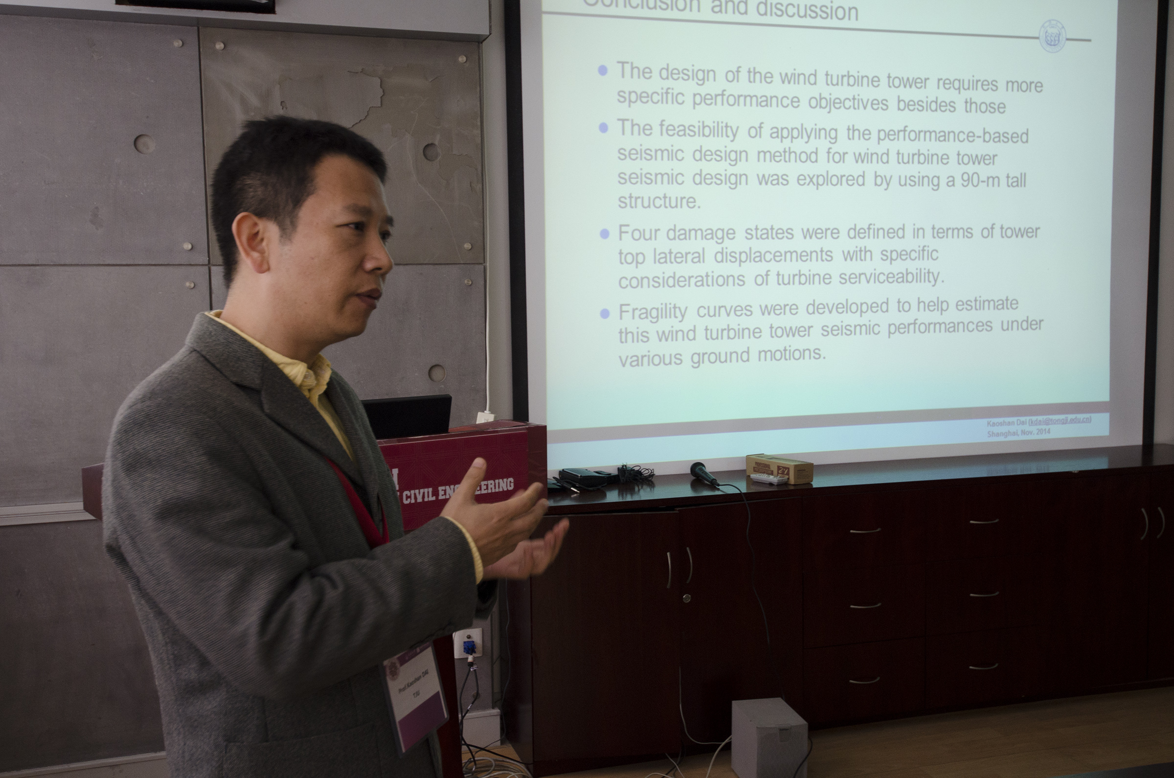 10日上午,杨永斌教授做了题为“On the Measurement of Bridge Dynamic Properties by a Moving Test Vehicle”的报告,报告中杨教授对目前桥梁动力特性测量中使用的移动工具测试方法及其实例进行了介绍,并与老师同学们分享了该领域的研究前沿。