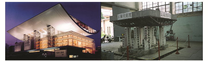 抗震试验,右图为模型振动台试验