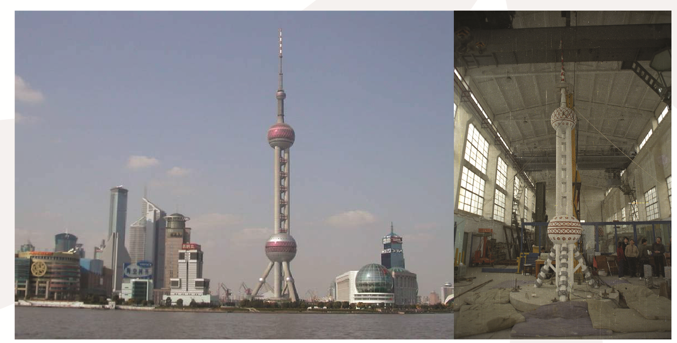 结构模型振动台试验,右图为结构模型振动台试验