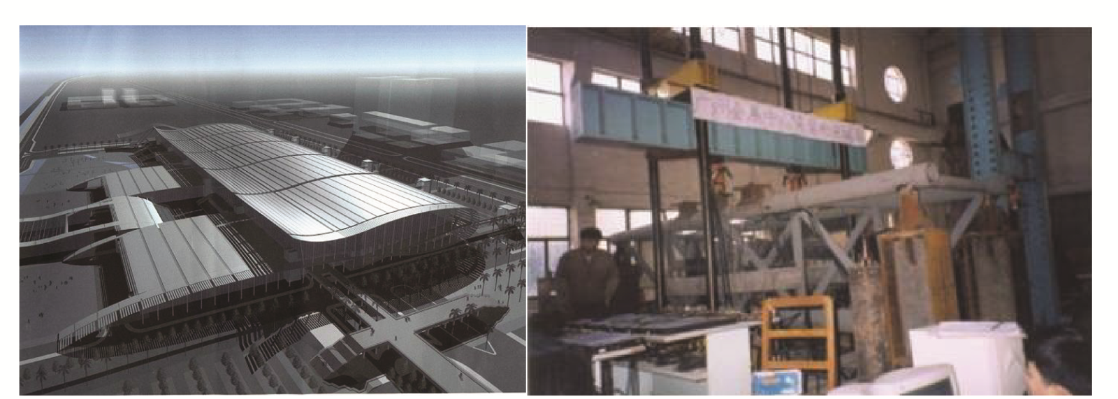 钢结构试验,右图为钢结构试验