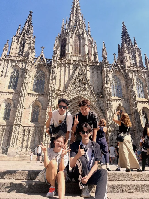 Moreover, the group visited an architectural trio - the Sagrada Familia, Casa Milà, and Casa Batlló, the most famous works of Antoni Gaudí, a renowned Spanish architect. They learned about the unique wave-shaped arches of Casa Milà and the Catalan Modernism architectural style of Casa Batlló, enjoying the artistic design and beauty of the famous buildings.