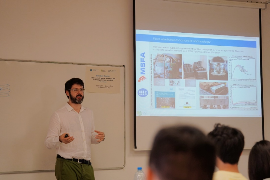 The program offered interactive courses, academic lectures, and field visits, enabling students to specialize their knowledge, broaden their horizons, and explore future opportunities. At Universidad Politécnica de Madrid (UPM) in Madrid, students enriched their understanding of civil engineering experiments by visiting a hydraulic laboratory and a material laboratory. They also attended lectures on new developments in structural materials, conceptual design in structure, and digital design and management of infrastructure. In Barcelona, they took part in the research and technology transfer activities at Universitat Politècnica de Catalunya, learning about the latest findings of the recycling of fiber-reinforced concrete and new materials in European standards.