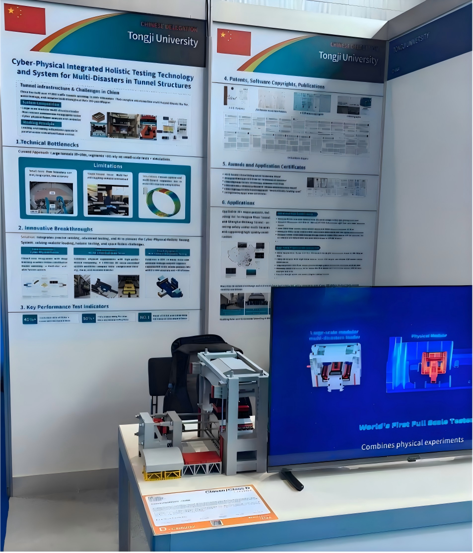The first winning project addresses the challenge of disaster prevention and control in tunnel and underground engineering under the coupled effects of multiple hazards, such as fire and water leakage. Their technology overcomes significant challenges, including the accurate real-world simulation of structural performance evolution under combined complex loads and high-temperature fire conditions, as well as the integration of a closed-loop digital-physical system. The testing technology has been widely applied in over 30 major tunnel projects, including the Haitai Yangtze River Tunnel, the Beiheng Passageway, and the Chongtai Yangtze River Tunnel. It provides essential technical support for high-quality construction and maintenance of tunnels in multi-hazard environments.