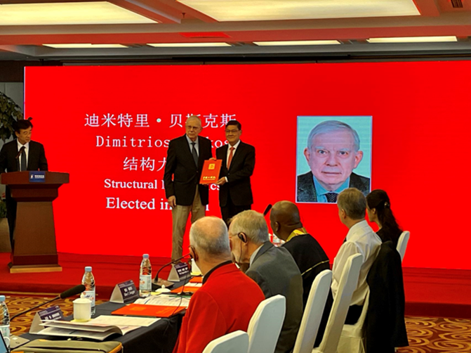 On May 25, 2023, the Global Engineering Innovation Forum and the Foreign Academicians Symposium and Certificate Presentation Ceremony of the Chinese Academy of Engineering were held in Beijing. Professor Dimitrios Beskos, who was elected as a Foreign Academician of the Chinese Academy of Engineering in 2021, was invited to attend the conference. During the event, he received the Academician certificate from Director Li Xiaohong.