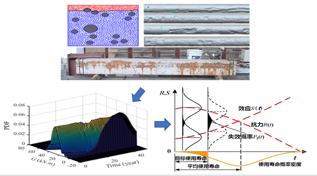 定量表征了环境作用的时空变异性,在不同尺度揭示了环境和荷载共同作用下材料、构件和结构的性能演化机理,创建了结构性能随机演化理论。提出了基于时变可靠度的结构预知寿命设计方法、实现了结构设计理论的创新与突破。创建了基于纤维增强复合材料、再生混凝土、形状记忆合金、承载-消能双功能构件等新材料和新结构的性能提升理论。