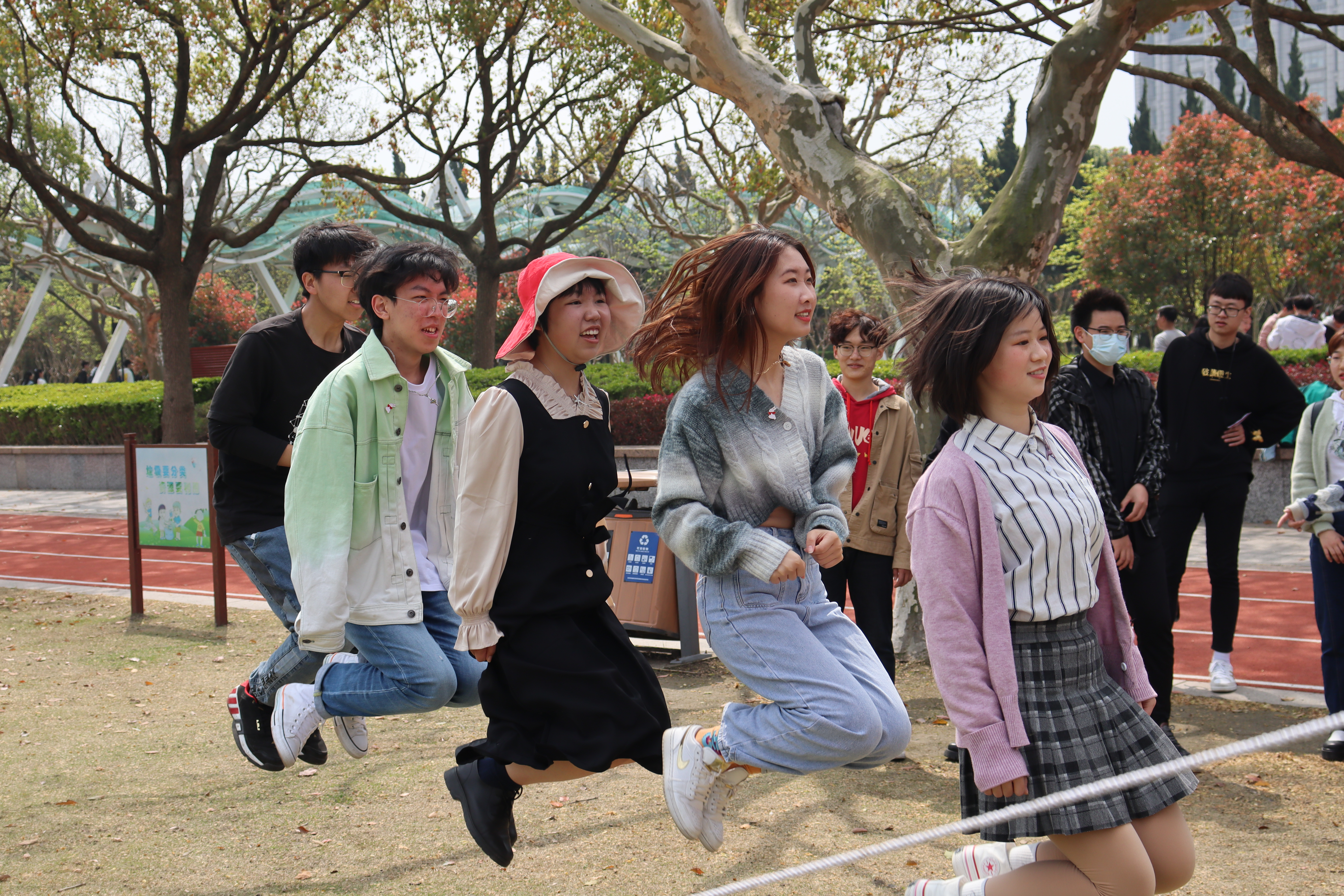 跳长绳在松江公园跑道旁进行,同一组同学齐心协力、互相配合,共同完成活动,获得相应的“任务积分”。工作人员根据各组在规定时间内跳过的次数来评判最终结果。跳长绳的活动加强了同学之间的交流。提高了学生的身体素质,增强了小组成员之间的凝聚力,也培养了学生团结协作的精神。