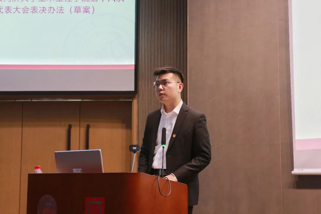 大会听取并审议通过了yl6809永利YL集团第十八次研究生代表大会表决办法的草案、yl6809永利YL集团第十八次研究生代表大会主席团成员建议名单的草案、yl6809永利YL集团第十八次研究生代表大会代表资格审查报告的草案、yl6809永利YL集团第十八次研究生代表大会选举办法的草案、yl6809永利YL集团第十八次研究生代表大会总监票人、监票人名单的草案。