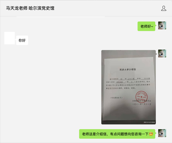(三)项目简介(100-150字,简要说明实践内容、成果及意义) 2021年,恰逢中国共产党成立100周年与哈尔滨解放75周年,我们不由对家乡的党史地志有了更深的情怀与更强的学习渴望。在本次实践中,我们通过资料学习,深入了解家乡史志;通过展馆参观,形成历史格局;通过调研访谈,积极献计史志宣传;通过成果整理,形成调研报告,并设立公众号;通过心得分享,制作视频为本次实践活动作结,为建党百年献礼。 | |||||||||||