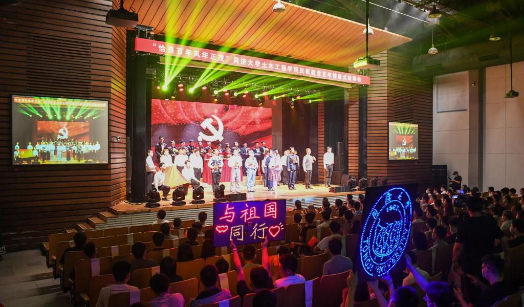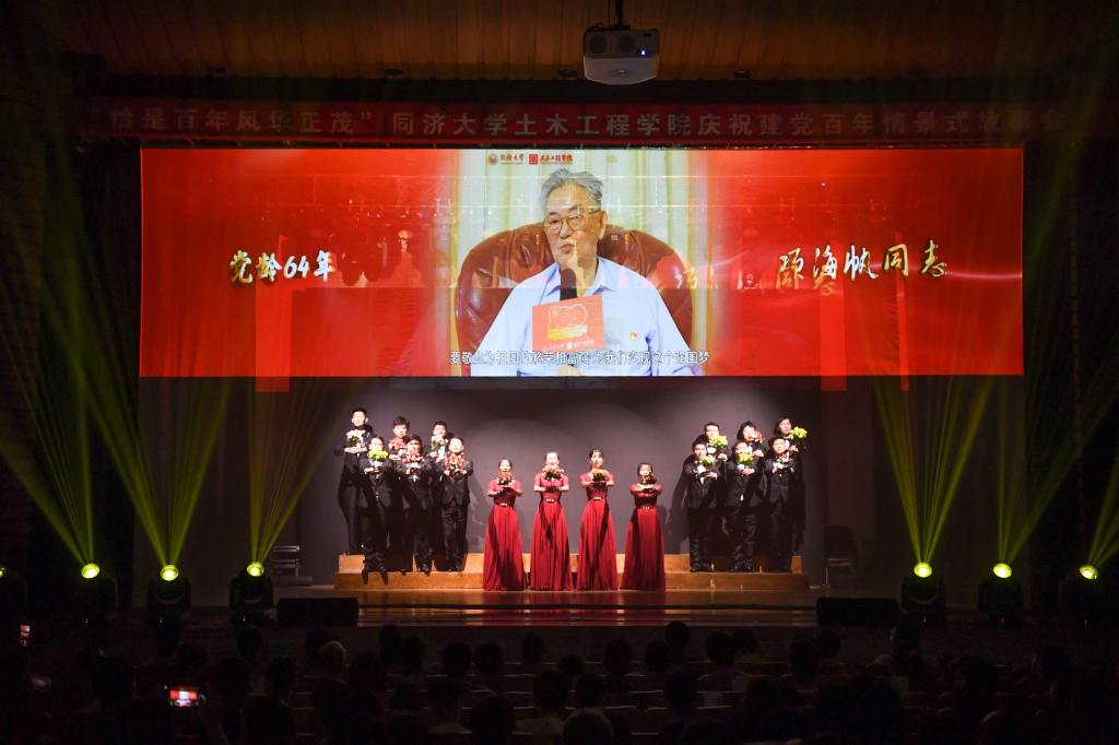 “衷心祝愿我们亲爱的党更加繁荣昌盛!”“要热爱党,热爱祖国,为祖国的繁荣和富强,为实现强国梦奋斗不息!”“始终坚持党员的初心使命,聚焦国家发展战略,把爱党爱国之情融入人才培养和科教兴国的实践中!”……在最后一个篇章“不忘初心”中,现场通过视频播放了以孙钧院士、项海帆院士、吕西林院士为杰出代表的学院老中青师生党员在建党百年之际的感怀和寄语,表达了他们对党的赤诚之心和奋进不息的坚定决心。