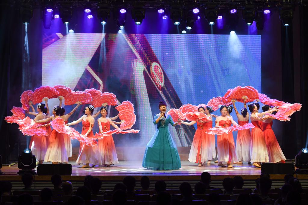 舞台上,配合故事会表演的多媒体背景屏贯穿演出始终,与实景表演相得益彰,带给观者沉浸式体验。作为幕布的一层白色薄纱帘在收放之间,情景式表演仿佛实现了时空的跨越。在每个篇章中都贯穿着一首耳熟能详的经典旋律,包括歌舞《长征》、钢琴演奏+诗朗诵《保卫黄河》、独唱《共和国之恋》、歌舞《春天的故事》、合唱《不忘初心》等。歌声深情,琴声悠扬,舞姿翩跹,富有强烈的艺术感染力,带给观众美的享受和精神感召力。