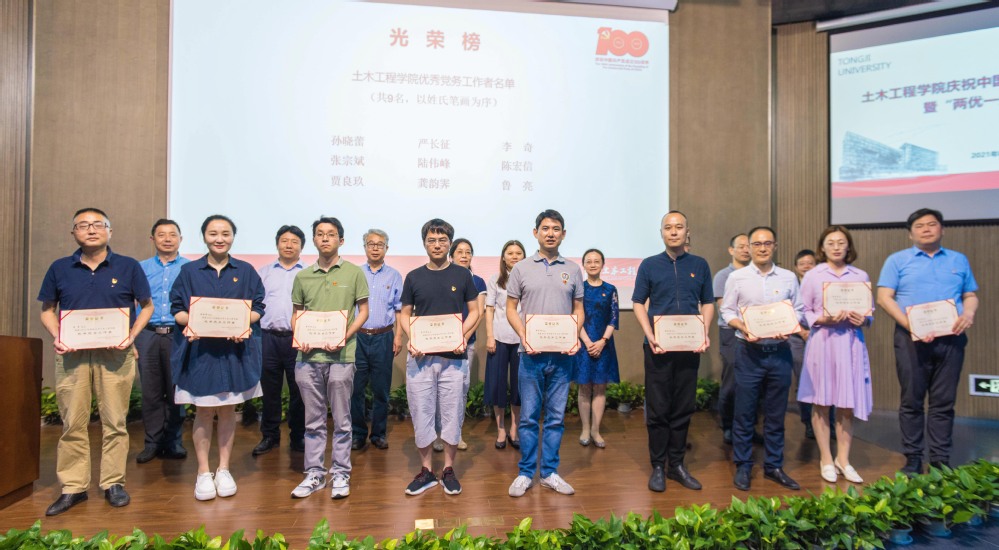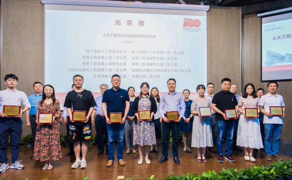最后,学院党委书记端木怡雯讲话。她首先对获得“两优一先”称号的党员同志和基层党组织表示衷心的祝贺。她回顾了中国共产党团结带领中国人民所经历的100年波澜壮阔的历史进程,随后指出同济土木学科也走过了百余年的峥嵘旅程,近年来在学校党委和学院党委的领导下,形成“四筑四度”工作体系,取得了一系列的成绩,成绩的取得离不开学院师生的共同奋斗和努力。她号召老师们要牢记立德树人这一根本任务,争做“好老师”“大先生”,要按照“四个面向”的要求,努力为打造国家战略科技力量贡献应有之力,勉励学生们要努力成为堪当民族复兴大任的时代新人。