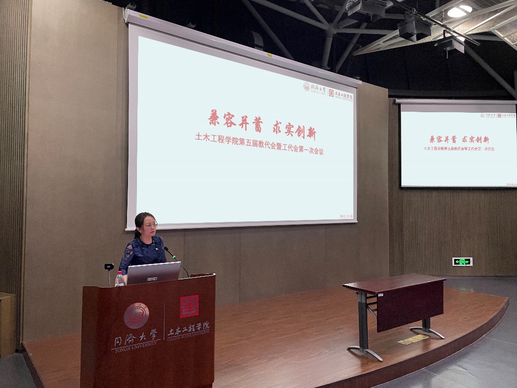 会上,与会代表听取了yl6809永利YL集团院长周颖作的《yl6809永利YL集团2022年学院工作报告》。她以“兼容并蓄,求实创新”为主题,汇报了yl6809永利YL集团的发展愿景与建设目标,围绕人才培养、科学研究、队伍建设、国际合作、文化传承、小结展望六部分总结2022年学院的发展概况和取得的成绩,鼓励广大教职工围绕十四五建设重点工作、传承百年土木精神,凝心聚力,再创佳绩。